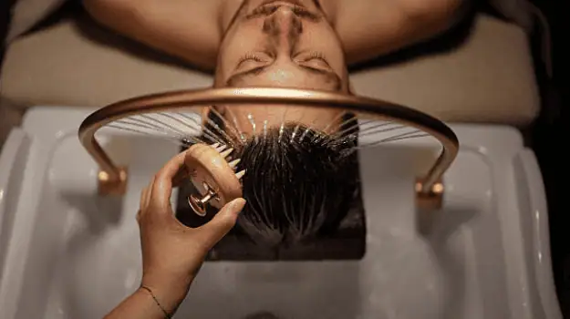 Beim sanften Ausspülen werden spezielle Massagetools eingesetzt, um die Durchblutung der Kopfhaut zu fördern und Verspannungen zu lösen. Die Kombination aus warmem Wasser und gezielter Massage sorgt für tiefe Entspannung und revitalisiert die Haarwurzeln.